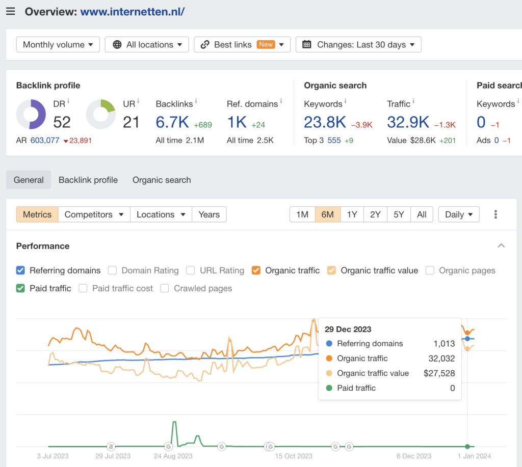 - Van de 5 sites is er slechts 1 op vooruit gegaan qua verkeer.