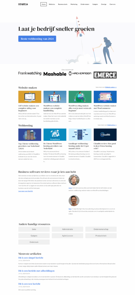 Hier kun je JouwWeb versie van de Start24 homepage zelf bekijken.