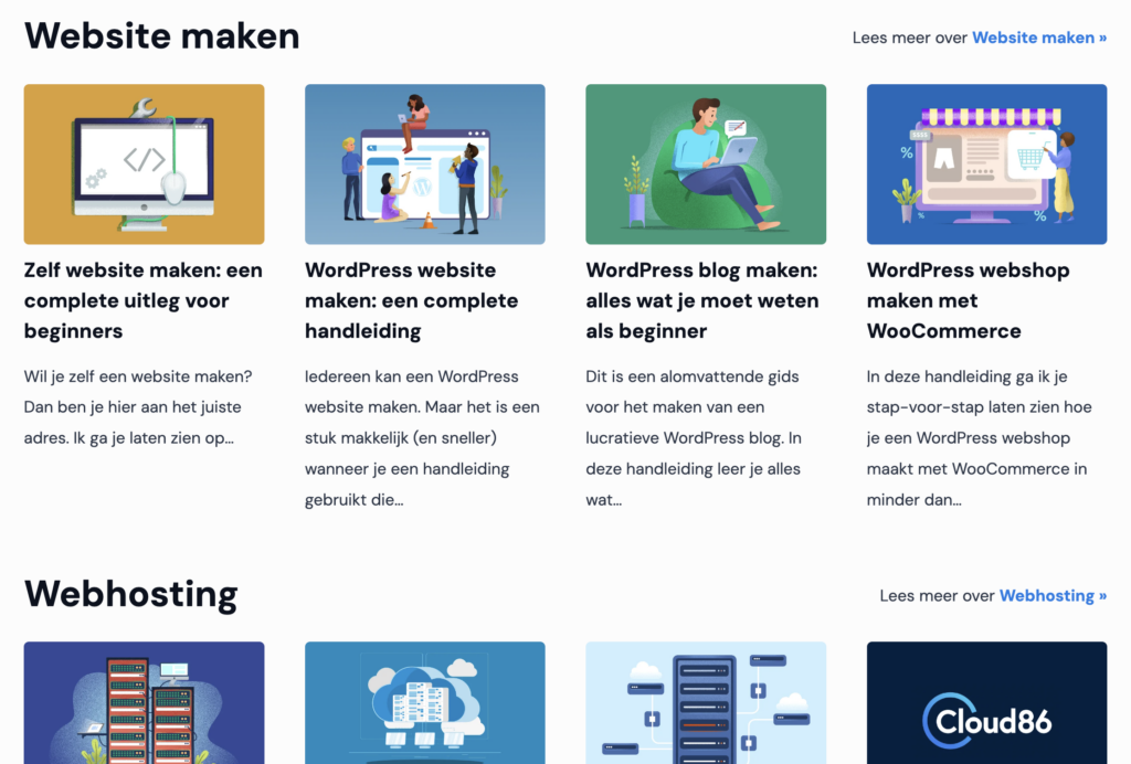 - WordPress met Cloud86. Hiermee hebben wij Start24 gebouwd. Toegegeven, er komt bij WordPress aanmerkelijk meer kijken dan bij JouwWeb, maar wat mij betreft is het de extra moeite dubbel en dwars waard. Onze WordPress handleiding helpt je op weg met het maken van je eerste WordPress website.