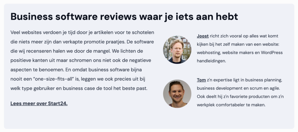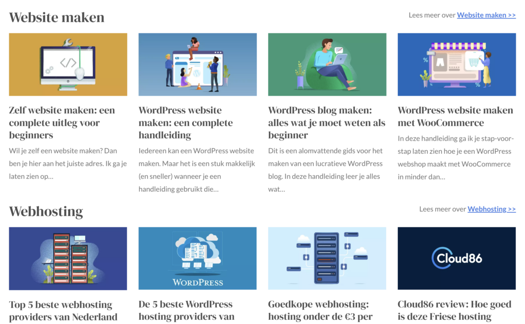 - Op de Start24 komen deze artikelen voort vanuit een blog feed. Ze worden dynamisch gegenereerd. Met JouwWeb moet je om dit effect te krijgen handmatig een plaatje maken, en een titel en excerpt eronder zetten. Dat is best een gedoe.