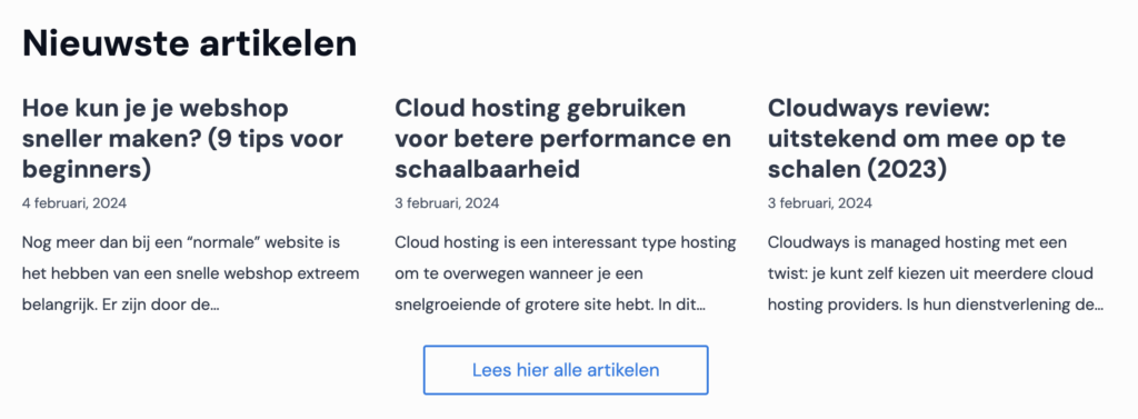 - Je kunt de blog artikelen alleen onder elkaar plaatsen.