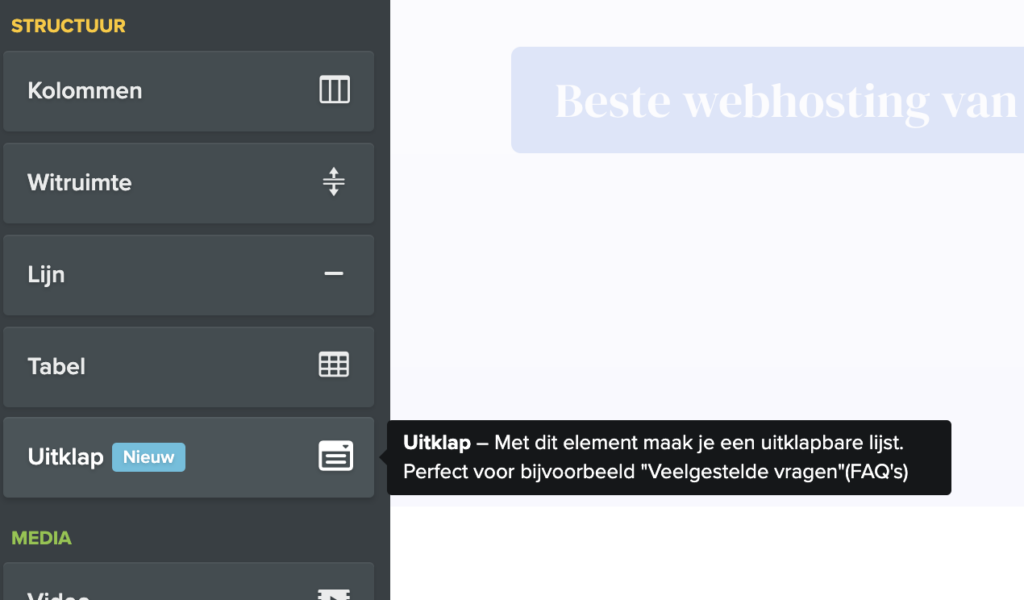 Als we kijken naar het YouTube kanaal van JouwWeb dan zien we dat het platform de afgelopen 5 jaar praktisch niet veranderd is. De enige nieuwe widget die ik heb kunnen bespeuren was de uitklap widget: