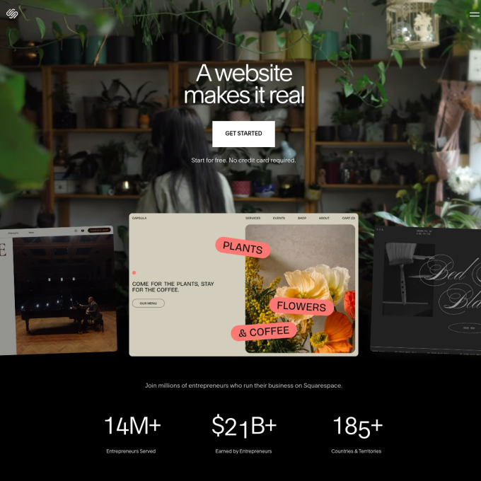 Prijzen zijn bij jaarlijkse betaling. Je kunt Squarespace 14 dagen gratis uitproberen, zonder creditcard.