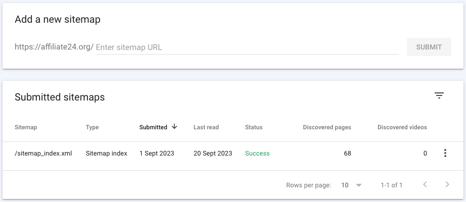 Log vervolgens in op Google Search console en navigeer naar Indexing » Sitemaps. Je kunt daar een nieuwe sitemap toevoegen bij Add a new sitemap.
