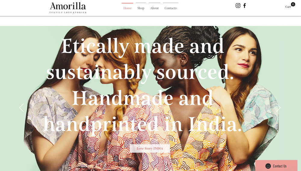 Amorilla draait om duurzaam geproduceerde textiel. De site heeft een prachtig lettertype en pastel-kleurenschema wat rust uitstraalt.