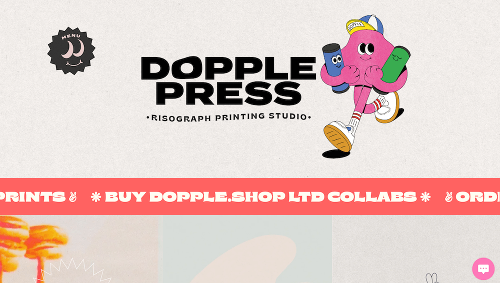 DopplePress is een printstudio. De site combineert aantrekkelijke afbeeldingen met animaties die niet irriteren of afleiden.