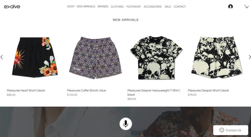 Evolve Clothing is de eerste Wix kleding webshop van dit overzicht.
