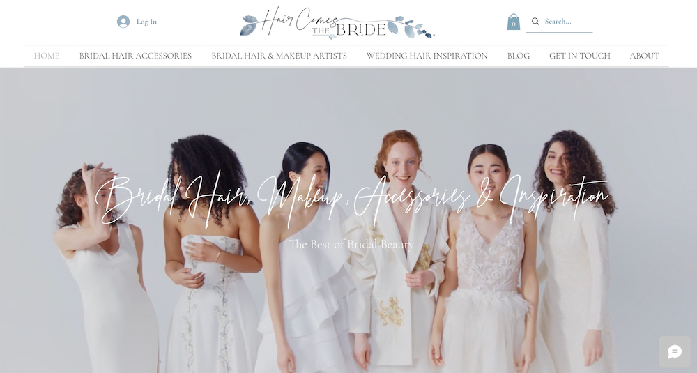 Naast de slimme woordspeling, schittert ook de site van Hair Comes the Bride zelf. Het is een behoorlijk uitgebreide site die de diensten van het bedrijf op een prachtige manier etaleert.