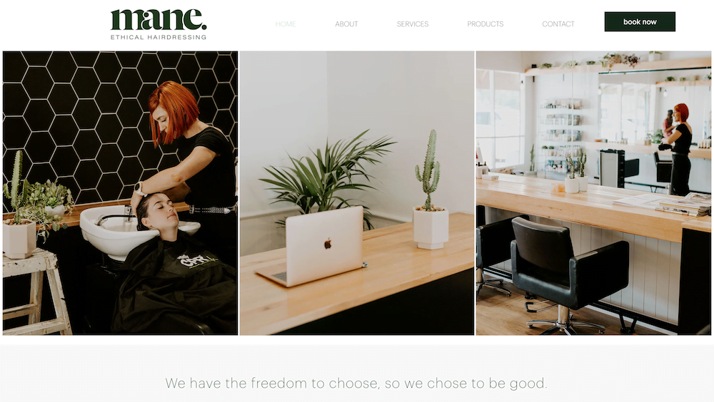 Mane is de website van een kapperszaak. Niet alleen etaleert de site de diensten die Mane aanbiedt, maar je kunt ook via de site een afspraak boeken (functionaliteit die je aan je Wix site toe kunt voegen via een app).