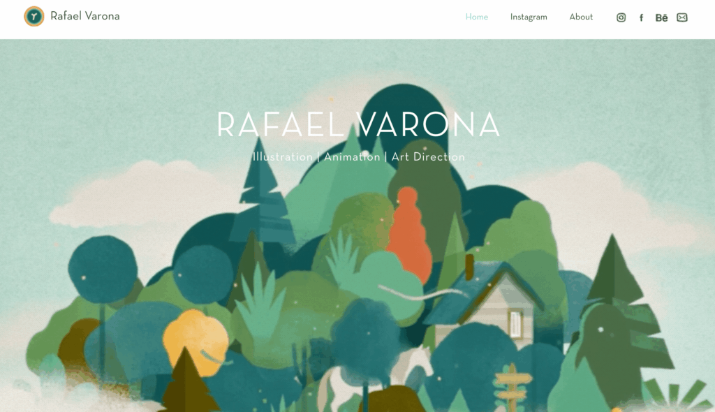 Je wordt verwelkomt door prachtige animaties die je direct bij de lurven grijpen. Scroll naar je beneden, en je ziet een overzicht van Rafael’s beste werk. Wanneer je op een van deze werken klikt, zie je alle afbeeldingen die ermee te maken hebben en krijg je een korte beschrijving van het project te lezen.