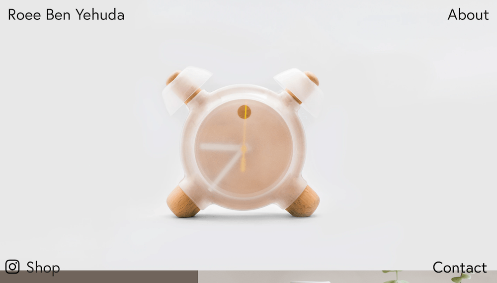 Roee Ben Yehuda is een designer. Z’n site heeft een unieke indeling: de links naar de belangrijkste pagina’s vind je in de hoeken van de homepage.