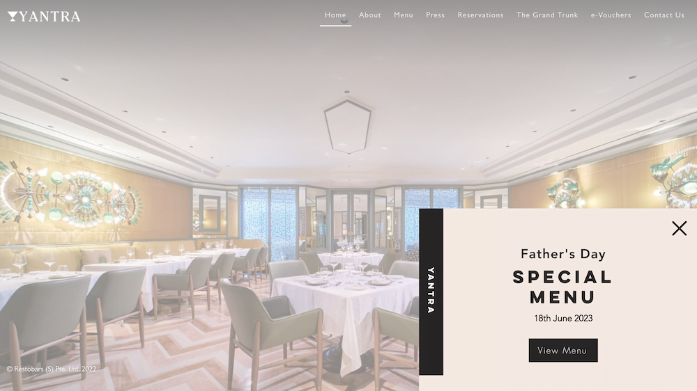 Benieuwd naar hoe een met Wix gemaakte restaurant website eruit kan zien? Bezoek dan de site van Yantra.