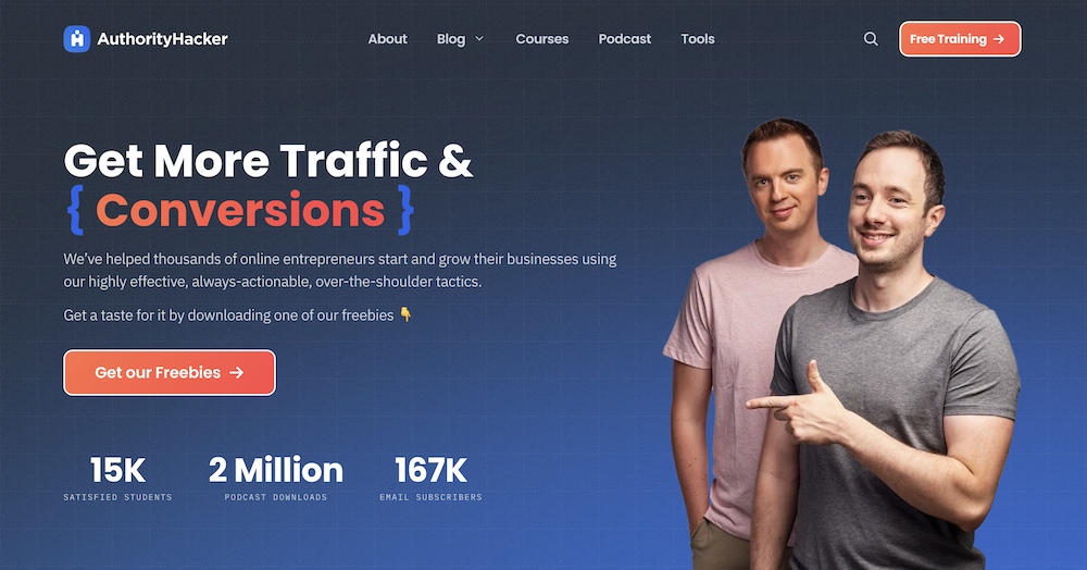 Mark en Gael, de heren achter Authority Hacker, zijn het enige duo binnen dit overzicht. Dit geeft hun materiaal een interessante dynamiek (om te zien wat ik bedoel, bekijk eens hun podcast).