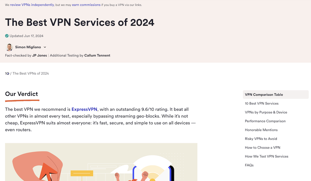 De tijd en het geld die dit soort sites hebben gestoken in diepgravend onderzoek, hun zelfontwikkelde VPN test tools en partnerships met enorme sites, zijn dingen die ik niet kan matchen.
