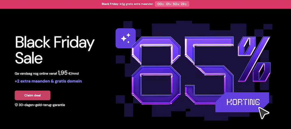 Waarom interessant: Hostinger is snel, makkelijk te gebruiken en heeft een support team wat 24/7 voor je klaar staat. Hun hosting was al aantrekkelijk geprijsd en deze Black Friday deal maakt het kostenplaatje nog aantrekkelijker. Daarnaast bieden ze een gratis migratiedienst.