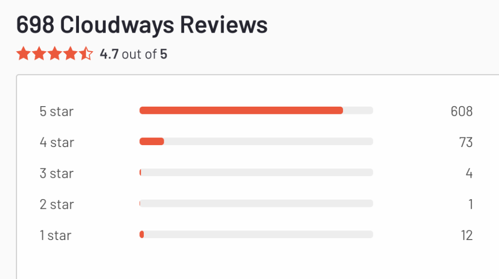 In de regel wordt Cloudways goed beoordeeld door gebruikers online. Neem gemiddelde scores van grote review platforms altijd met een korrel zout, want deze zijn relatief eenvoudig te manipuleren door bedrijven. Toch wil ik voor de compleetheid die van TrustPilot en G2 delen: