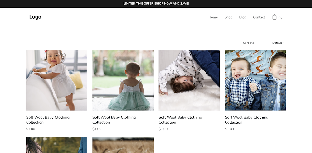 Een met AI gegenereerde webshop die zich specialiseert in babykleding gemaakt van schapenwol