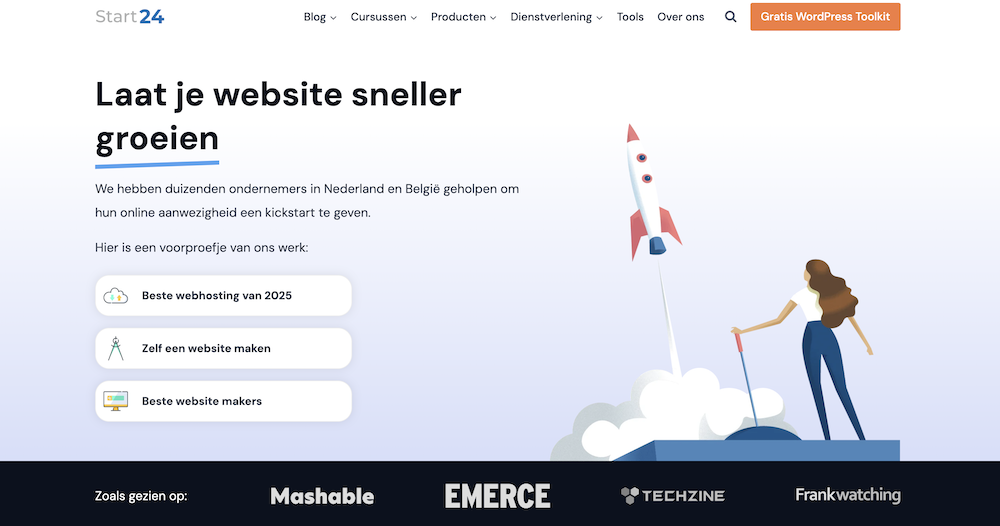 Met Start24 hebben we voor wit, lichtblauw en oranje gekozen. Wij vinden het belangrijk dat Start24 rustig, robuust en betrouwbaar overkomt. Dat zie je vooral terug in het gebruik van blauw en wit.