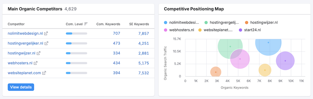 Ook zie je in één oogopslag wie je belangrijkste concurrenten zijn binnen de SERPs en in welke mate er een overlap is tussen de zoekwoorden.