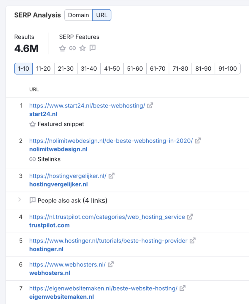 Wat ikzelf ook erg handig is dat je een handig overzicht van de SERPs te zien krijgt: