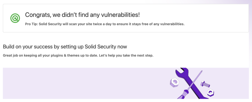 Vervolgens kun je je site laten scannen door SolidSecurity. Ik raad aan dat je dit doet.