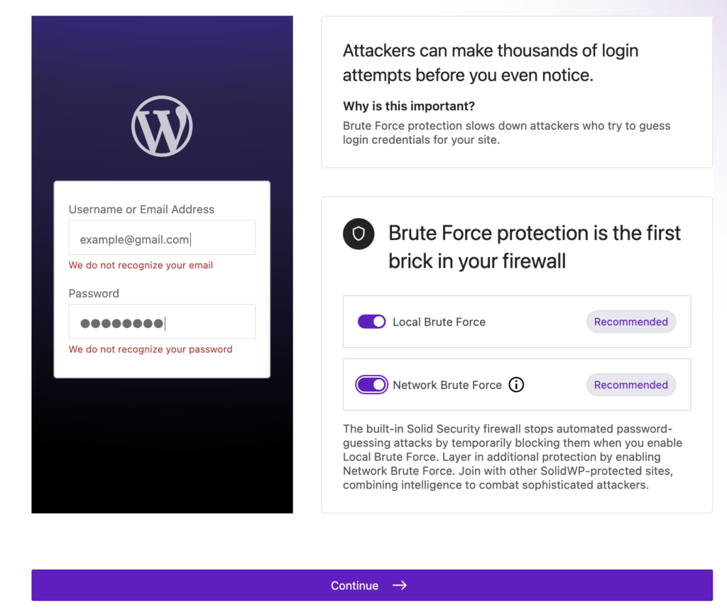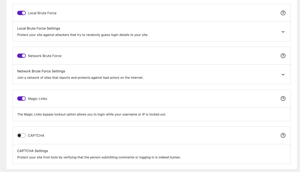 Het beschermt de inlogpagina van je site door sterke wachtwoorden af te dwingen en alternatieve inlogmethoden aan te bieden, zoals twee-factor-authenticatie en wachtwoordloos inloggen. Tegelijkertijd scant het je site op kwetsbaarheden in je WordPress-plugins, thema’s en de WordPress core.