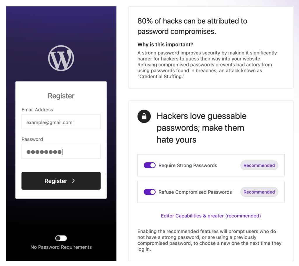 Deze wachtwoord features zijn vooral erg handig wanneer je WordPress site meerdere gebruikers heeft. Zo kun je zeker weten dat niemand stiekem een wachtwoord als “wachtwoord123” heeft gebruikt, of een wachtwoord wat eerder is gelekt.