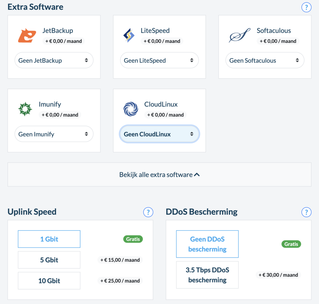 - CloudLinux. Heb je alleen nodig als je meerdere sites van klanten op één VPS gaat beheren.